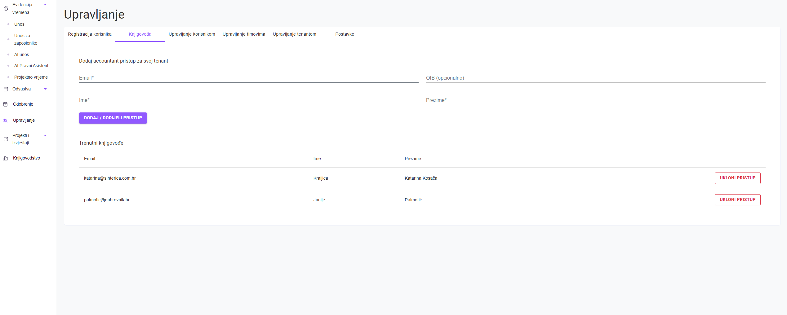 Unesite email adresu vašeg knjigovođe za automatsko slanje izvješća ili ga dodajte kao korisnika u sustav s pristupom računovodstvenim podacima.