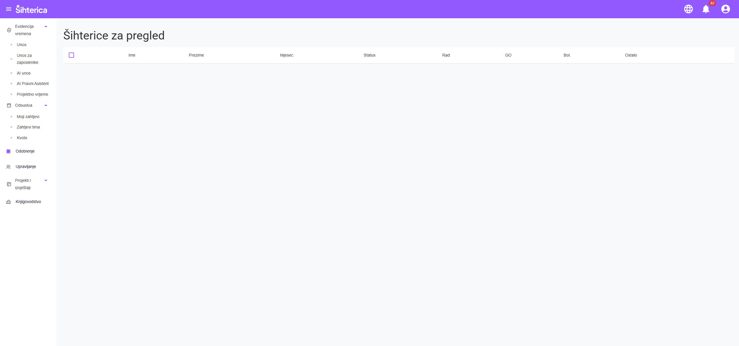 Sve prijave godišnjih odmora, bolovanja i drugih izostanaka na jednom mjestu. Pregledajte detalje, provjerite dostupnost tima i odobrite ili odbijte zahtjev s obrazloženjem.