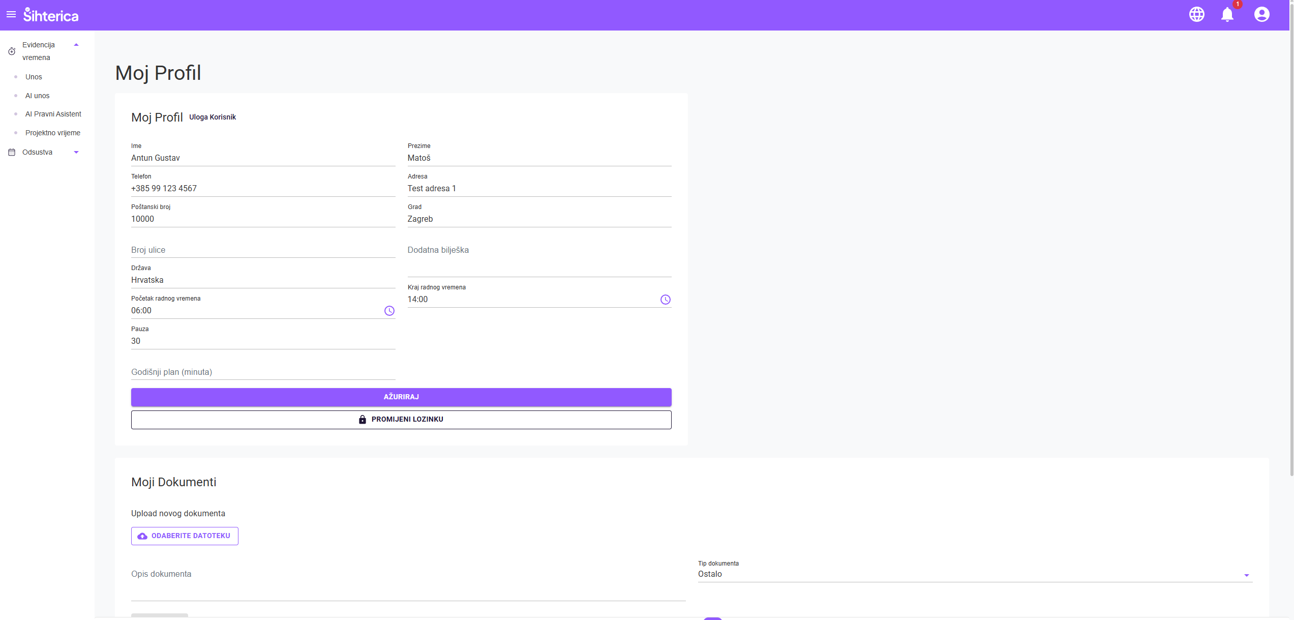 Jednostavan vodič za svakodnevni unos radnog vremena i upravljanje vlastitim profilom.