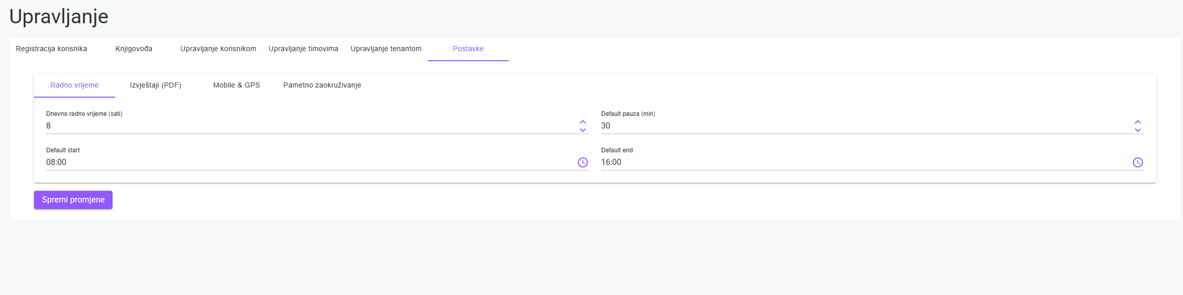 Sve što trebate znati o postavljanju tima, odobravanju radnih sati i pregledavanju evidencija – na jednom mjestu.